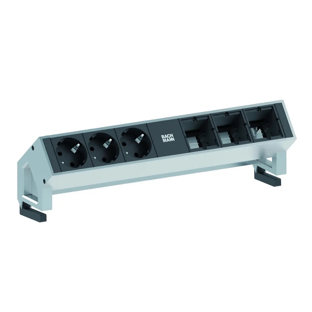 Mediaport Bachmann Desk 2 zapewnia wygodny i szybki dostęp do gniazd z jednego centralnego miejsca na blacie, co czyni go idealnym rozwiązaniem dla biur, sal konferencyjnych i innych miejsc pracy. Mediaport można łatwo przymocować do krawędzi blatu za pomocą specjalnego mocowania bez konieczności wiercenia w blacie, zachowując estetykę i integralność mebla. Dzięki temu mediaport Bachmann Desk 1 oferuje wszechstronność i wygodę, dostosowując się do różnorodnych potrzeb użytkowników.