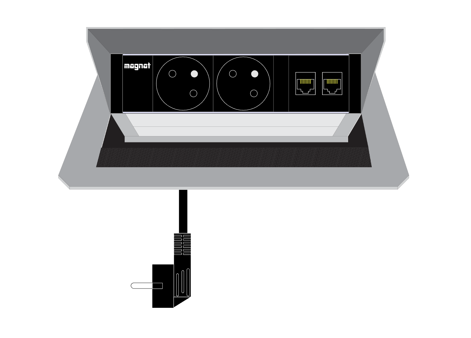 Uchylny mechanizm kasetowy nie tylko pozwala na estetyczne ukrycie listwy w blacie, ale także chroni gniazda i złącza przed kurzem i uszkodzeniami, gdy nie są używane. Dzięki temu rozwiązaniu, listwy zasilające są dyskretne, funkcjonalne i idealnie wpasowują się w nowoczesne i eleganckie wnętrza.