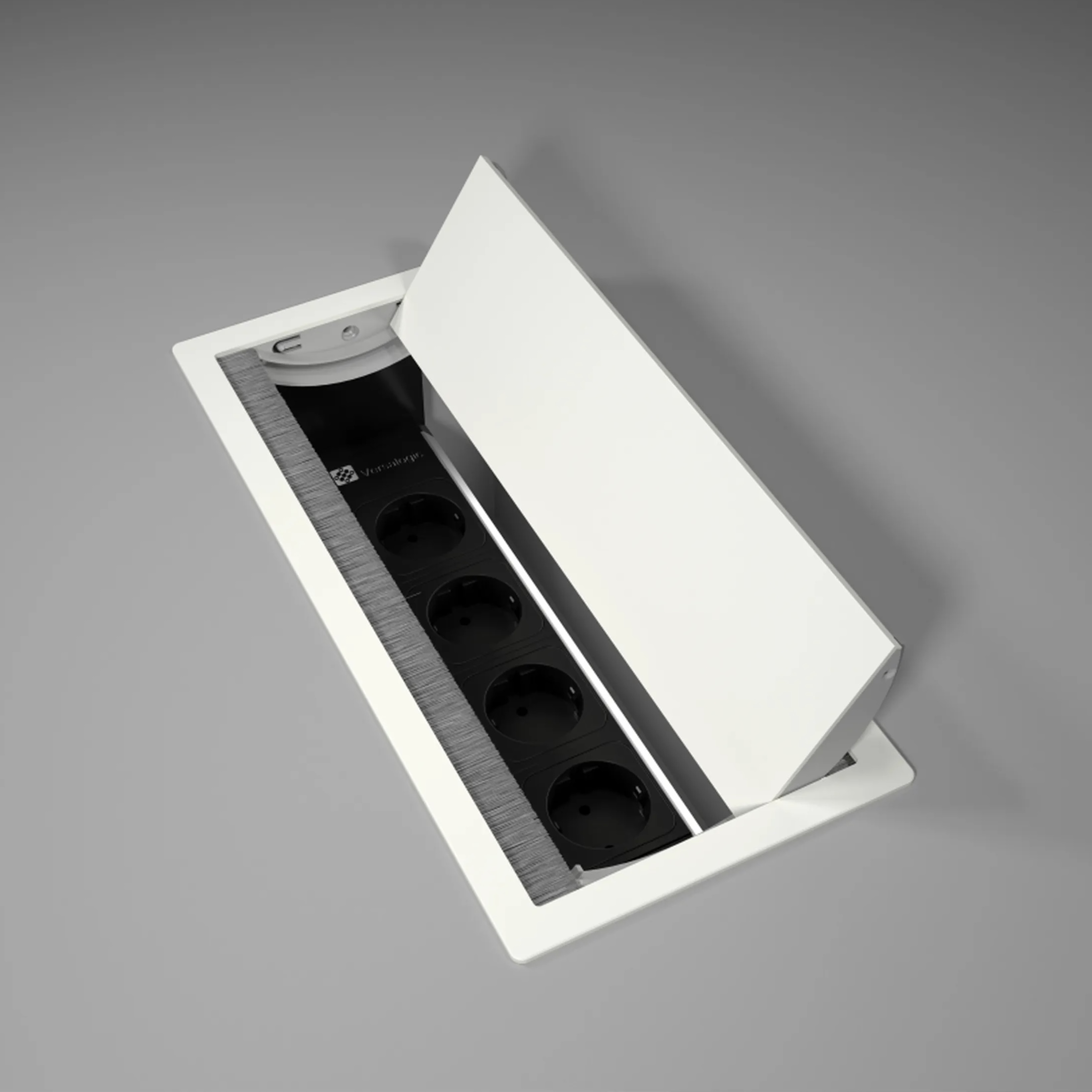 Model Dual z serii VersaFlap został zaprojektowany z myślą o stołach konferencyjnych oraz wspólnych biurkach. Dzięki mechanizmowi uchylnemu użytkownicy mają dostęp do gniazdek elektrycznych z obu stron.